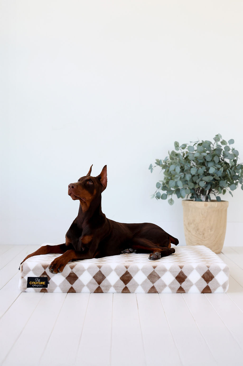 Elevate their crate with our orthopedic memory foam crate pad. Made with a water and scratch-resistant Minky Couture fabric cover.